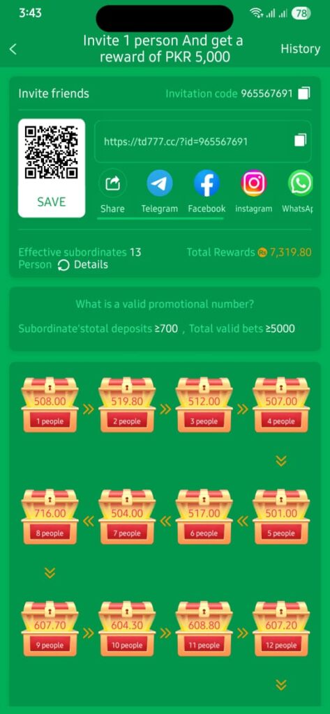 Invite friends to TD 777 Game APK and earn additional rewards. The referral system encourages users to grow their network while benefiting from extra incentives.